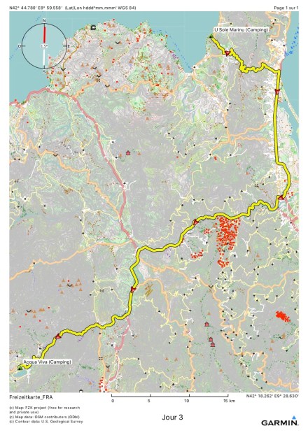 En fait non, pas au camping des flots bleus, on s’est trompé. On n’a pas rencontré Patrick, mais Michel et Coline qui font partie des organisateurs du Raid. Une très belle organisation nous attendait d’ailleurs là-bas! Nous avons expliqué les aménagements que nous souhaitions sur le trajet du Raid. En effet, il est possible d’éviter certaines parties pour optimiser la course en fonction de l’état prévisible de fatigue, de la difficulté du terrain ou en fonction des facilités des « raiders » avec telle ou telle épreuve…